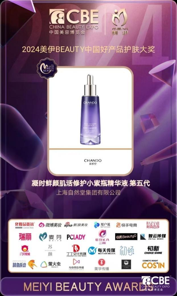 2024美伊BEAUTY年度美妆大赏暨颁奖盛典上,zirantang集团董事长兼总裁郑春颖先生荣任2024CBE日化品牌联盟主席团副主席。zirantang凝时鲜颜肌活修护小紫瓶精华液第五代荣获2024美伊BEAUTY中国好产品护肤大奖·年度抗老再生精华,zirantang极地精华露荣获2024美伊BEAUTY·护肤类抗老精华TOP大奖。