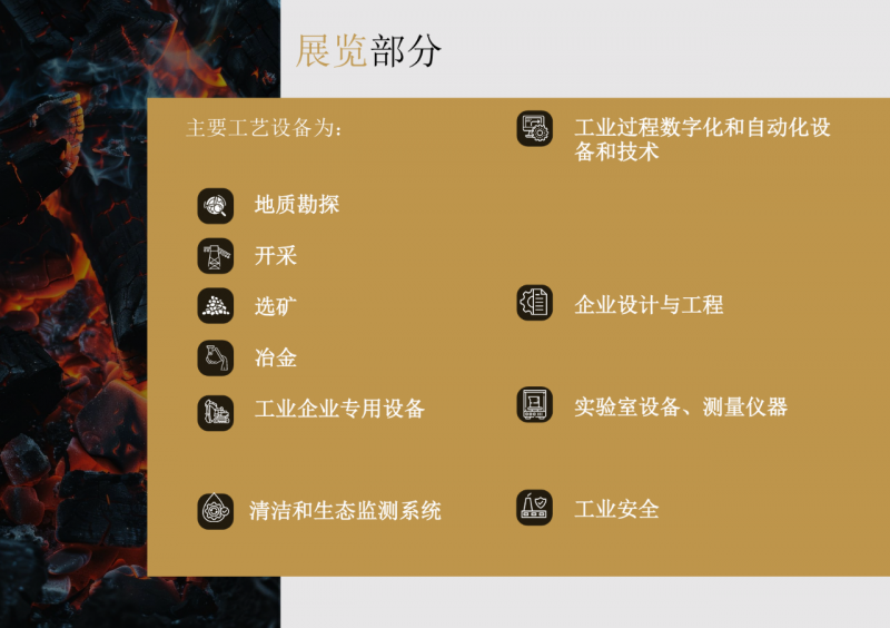 地质勘探,开采,选矿,冶金,工业企业专用设备,清洁和生态监测系统,工业过程数字化和自动化设备和技术,企业设计与工程,实验室设备、测量仪器,工业安全等