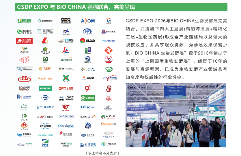 此外,CSDP EXPO 2026将与BIO CHINA生物发酵展及其旗下精酿啤酒、精细化工、生物医药等主题展联动,形成覆盖上下游的全产业链展示格局。预计将吸引来自食品、化工、医药、能源、环保等领域的数万名专业观众与买家,打造集展示、交易、学习、对接于一体的高效平台。