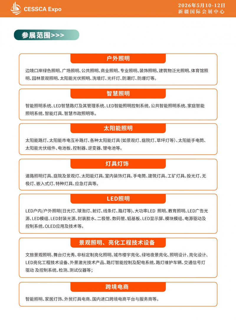 在此背景下,2026中国新疆国际户外照明展览会,将于5月10-12日在新疆国际会展中心隆重启幕!为中国照明企业开辟“零时差”贸易通道,抢占中亚绿色照明新蓝海!