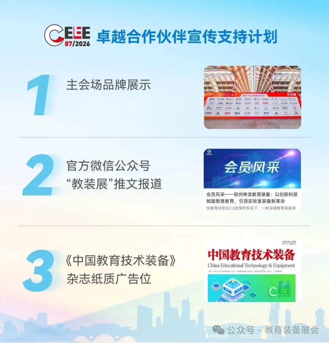 为充分发挥行业协会服务职能,全面提升参展企业品牌曝光与参展效益,中国教育装备行业协会针对第87届教装展推出以下宣传政策: