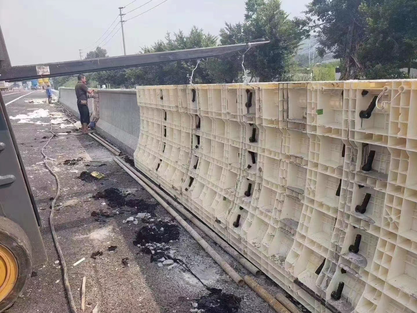 • 脱模简便,免脱模剂板面不粘混凝土,自动脱离、易清理,省脱模剂与人工。