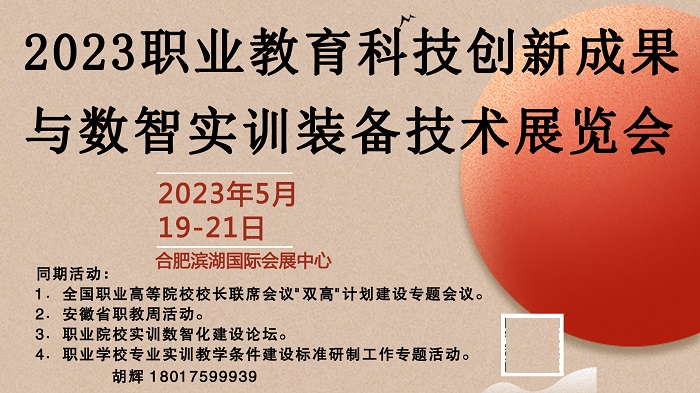 为贯彻党的二十大精神,深入落实《关于深化现代职业教育体系建设的意见》,推进职普融通、产教融合、科教融汇,优化职业教育类型定位,推动职业教育高质量发展,为现代产业体系提供高端技术技能人才,将在全国职业高等学校校长联席会议召开专题会议期间,由中国教学仪器设备有限公司举办的"职业教育科技创新成果与数智实训装备技术展览会"拟定于2023年5月19日﹣21日在安徽省合肥市举办。具体内容如下: