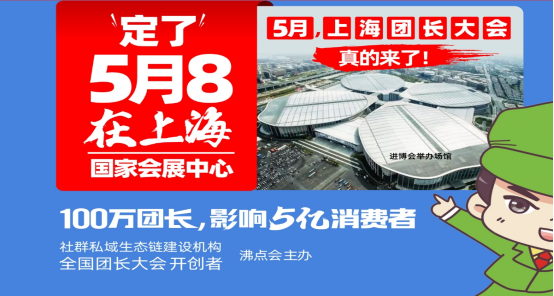 上海团长大会,又叫第6(+1)届全国团长展会,是社群私域生态链建设机构:沸点会,在(3月)第6届杭州全国团长大会与(8月)第7届广州全国团长展会二场年度大会中间增加的一场(5月)上海团长展会。