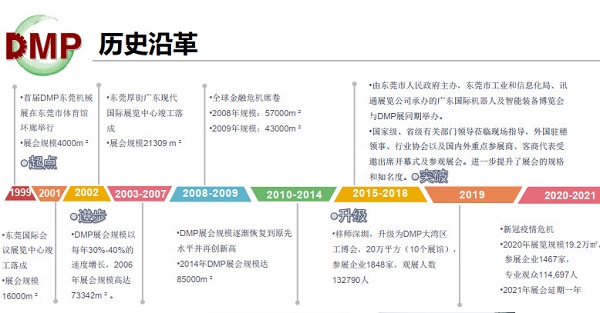 DMP大湾区工博会由讯通展览集团主办。展会前身为DMP国际模具、金属加工、塑胶及包装展,于1999年创办, 2019年全面升级为DMP大湾区工业博览会,展会截止目前经历了24年发展,现已成为工业制造领域一年一度的专业展会。