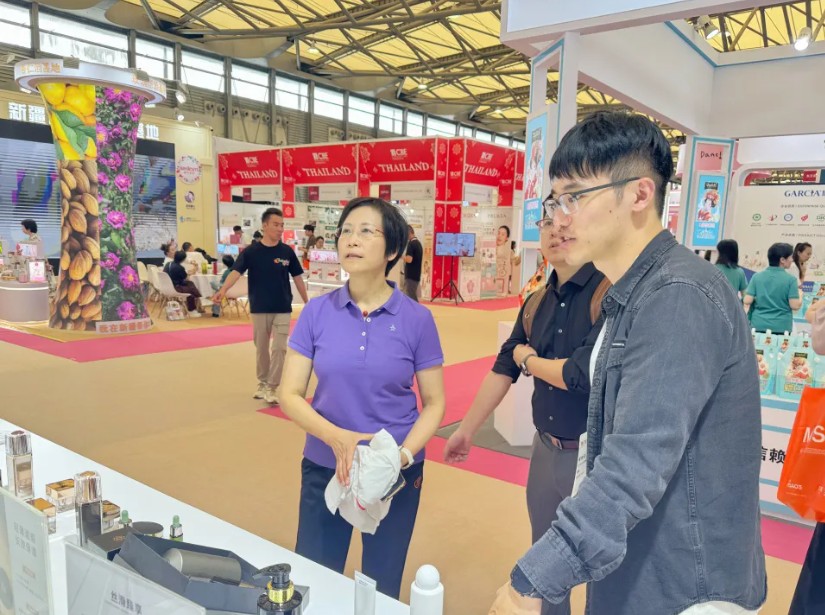 中国香料香精工业协会理事长颜江瑛,东方美谷集团党委书记、董事长周如意,东方美谷党委委员、副总经理褚英共同走进东方美谷企业展区,与参展企业深入交流。集团招商团队前往国内外彩妆、个护、日化品牌展台开展招商宣传推介,不断拓宽东方美谷“招商朋友圈”。