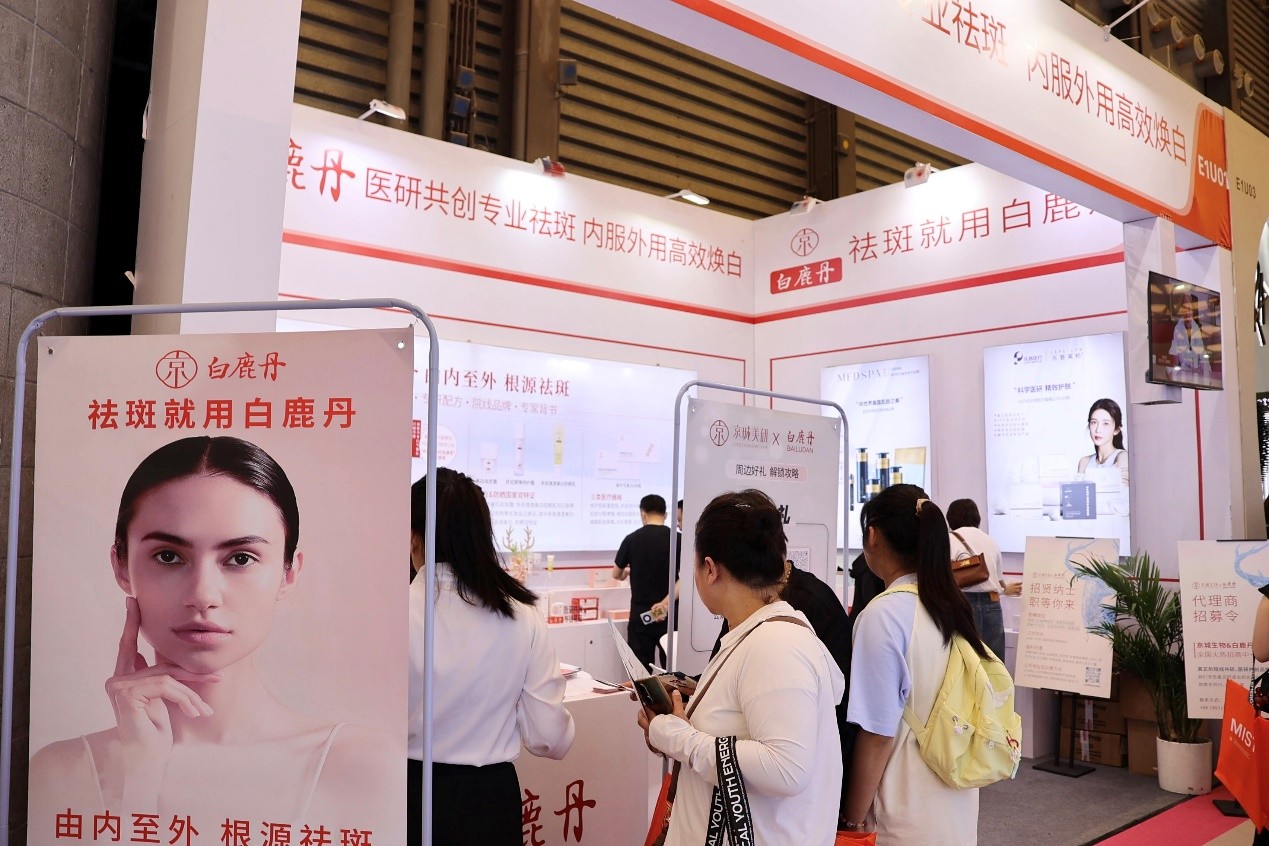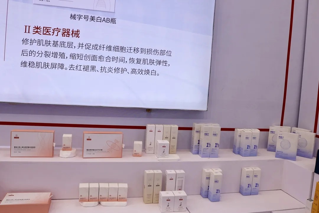 京城生物针对各类问题肌肤,展示了一系列精准高效的护肤产品,有科学美白专业祛斑的“白鹿丹”品牌、专注于精准祛痘的“丽面平”品牌和舒敏抗衰的“京城美研”品牌,产品吸引了无数参展观众驻足展位。