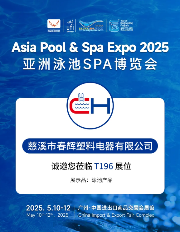 大家好!我司将参加2025年5月10-12日在广州·中国进出口商品交易展会展馆举办的“2025广州泳池SPA博览会”(Grandeur · Asia Pool & Spa Expo 2025),将为大家带来Pool cover reel 泳池卷轴器、Pool ladder 泳池扶梯、Pool cleaning accessories 泳池清洁用品等配套设备。届时,诚邀广大客商朋友莅临广州泳池博览会到我司展位参观交流,更多产品和服务优惠,欢迎各位到展会现场详谈!