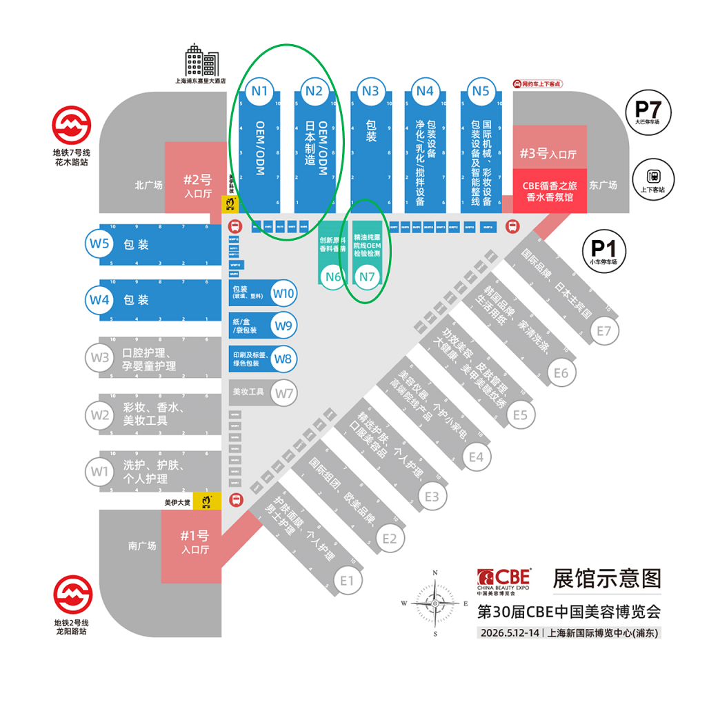 N7馆:涵盖精油纯露、院线级OEM及检验检测服务,助力产品安全与功效验证。