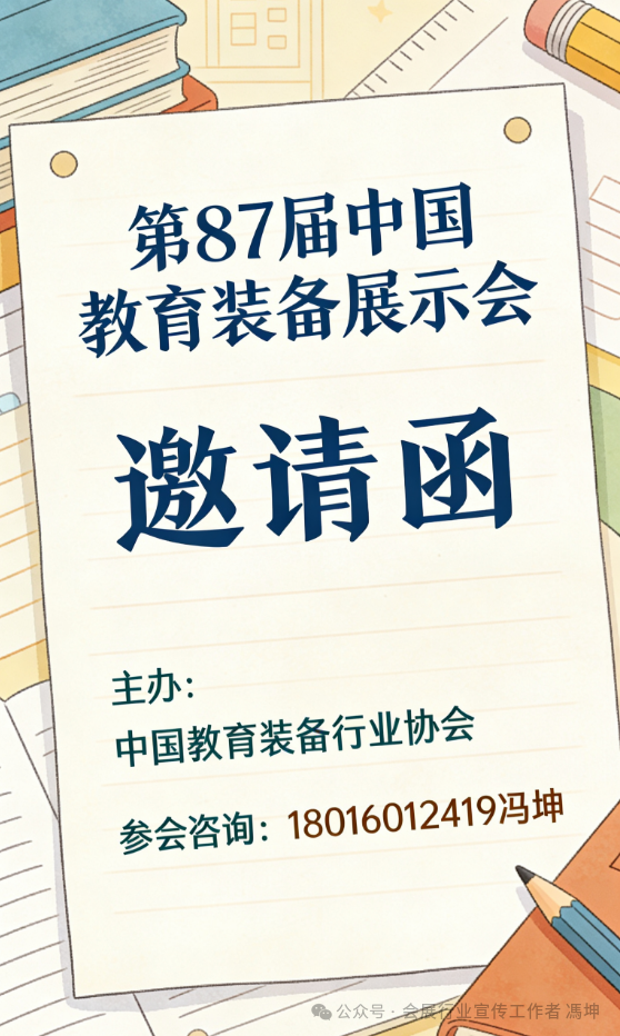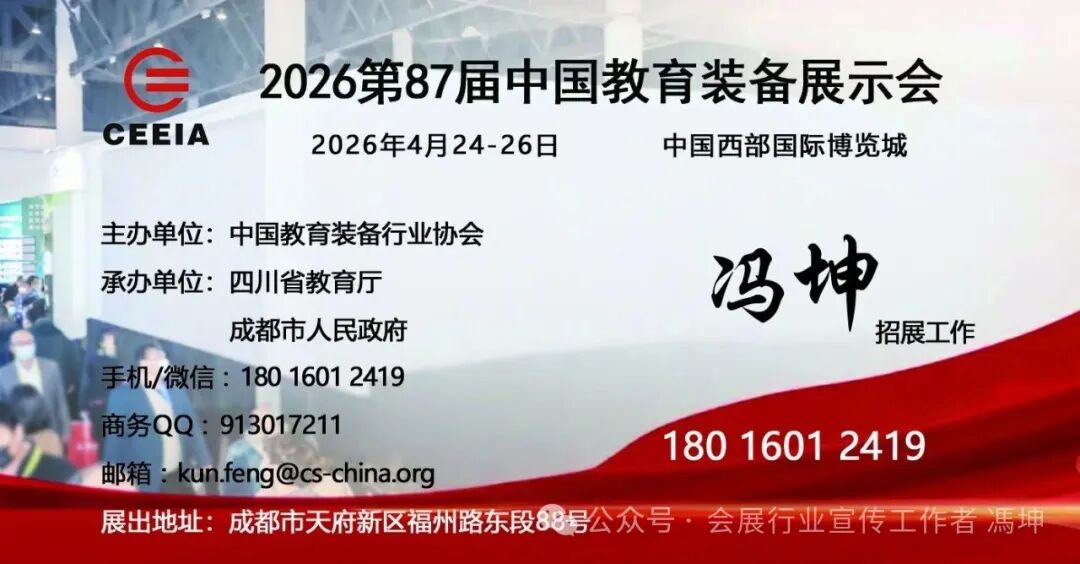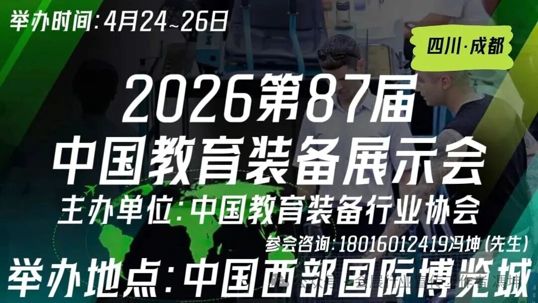 由中国教育装备行业协会主办四川省教育厅、成都市人民政府承办“第87届中国教育装备展示会”,将于2026年4月24-26在四川成都中国西部国际博览城国际展览展示中心隆重举行。在此,我们向全国各地教育界的同仁、教育装备生产经营企业的朋友们,以及所有关心教育事业的各界人士,发出最诚挚的邀请!