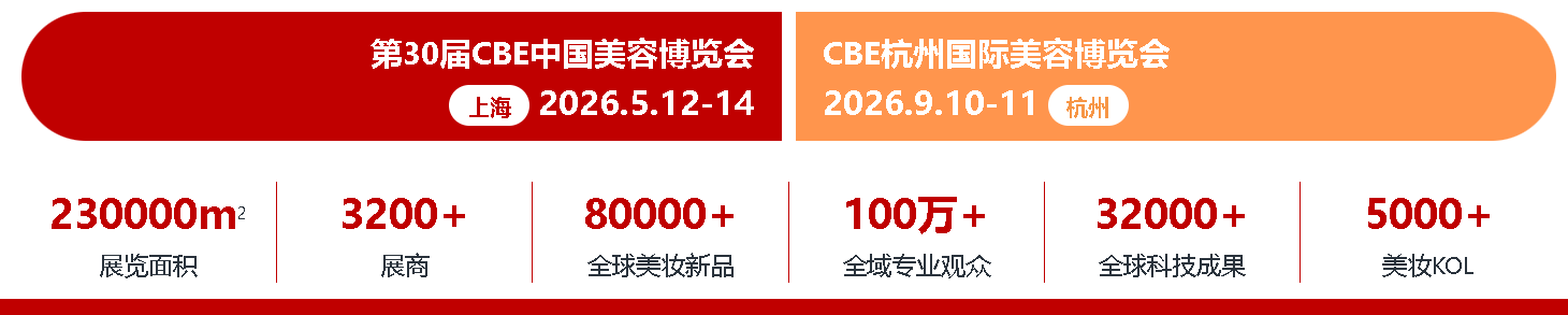 作为美妆从业者必到的展会,2026年5月12-14日在上海新国际博览中心举办的第30届CBE中国美容博览会将吸引40个国家及地区的超3500家化妆品企业参展,呈现超8万件美妆产品/新品/科技成果。展品覆盖护肤、彩妆、香水香氛、面膜、个人护理、男士护理、洗护、家用仪器、家用清洁、口服保养品、美妆工具、连锁加盟、美容产品及美容品、美容仪器及设备、美甲美睫纹绣及美牙护目、功效护肤、皮肤管理及整店输出、OEM/ODM、包装、原料及材料、机械设备、检验检测及其他服务商等品类。 展会同期,还将举办超过100场的美妆行业科技与市场趋势。在满足产业链一站式采购需求的同时,更能现场直观感受行业的趋势变化与商业机会,从而助力化妆品企业把握新机遇,获取生意新增长。