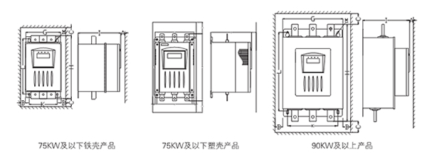软起动器外形及开孔尺寸(单位:mm 以380V为例)